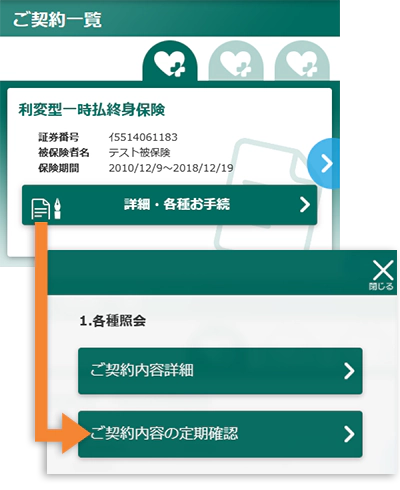 お客さまWebサービスからご契約内容の定期確認を実施。契約内容のPDFダウンロードや、情報冊子の閲覧もできます。