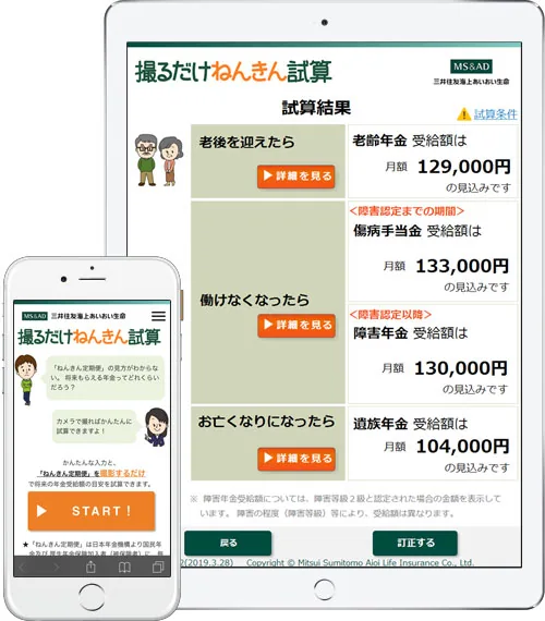 「撮るだけねんきん試算」は、ねんきん定期便をお客さまのスマートフォンまたはタブレットのカメラで撮るだけで、公的年金等の受給額(目安)を試算するツールです。