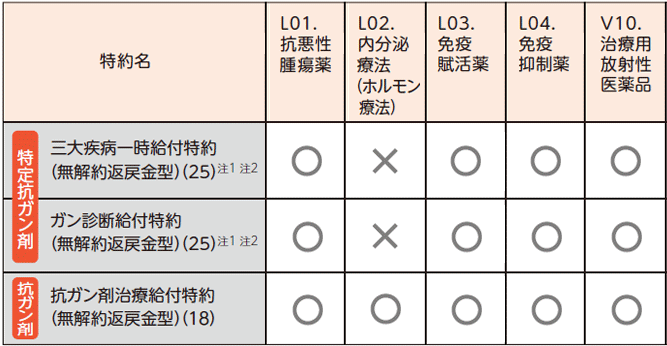●抗悪性腫瘍薬とは、世界保健機関の解剖治療化学分類法による医薬品分類のうち、「L01.抗悪性腫瘍薬」に分類されるものに限ります。