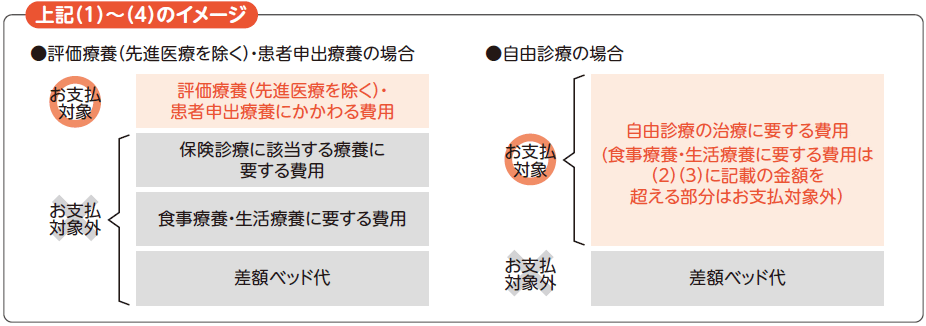 ●自費診療に対するお支払いは、医学的に効果が認められたガンの治療を目的として、被保険者がその療養を受けた病院等に支払うべき費用に限ります。ただし、その中でもお支払対象外となる費用があります。