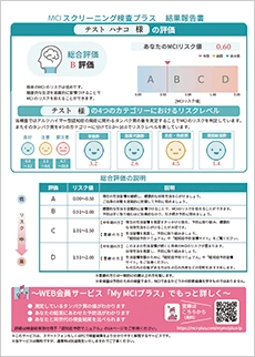 - ※本サービスは、MCIリスクを判定するものであり、疾病の罹患可能性の提示や診断等の医学的判断をするものではありません。