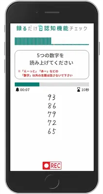 「表示される数字を読み上げる声」と「暗算しながら発する声」の2種類の音声で、軽度認知障害(MCI)のリスクを判定※します。